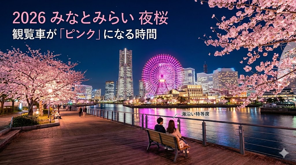 【2026年】みなとみらいの夜桜は「歩くだけ」じゃもったいない!観覧車が「ピンク」になる時間と、混まずに座れる海沿い特等席
