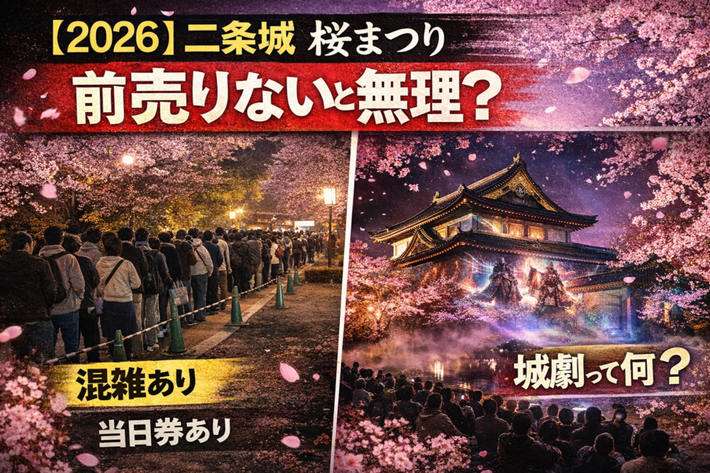 【2026年】二条城桜まつりは「前売り券」を買わないと入れない?混んでるの?「城劇」って何?等を調べてみた