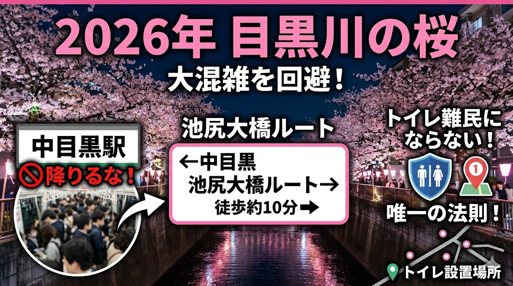 【2026年】目黒川の桜は「中目黒駅」で降りるな!大混雑を回避する「池尻大橋ルート」と、トイレ難民にならない唯一の法則は?