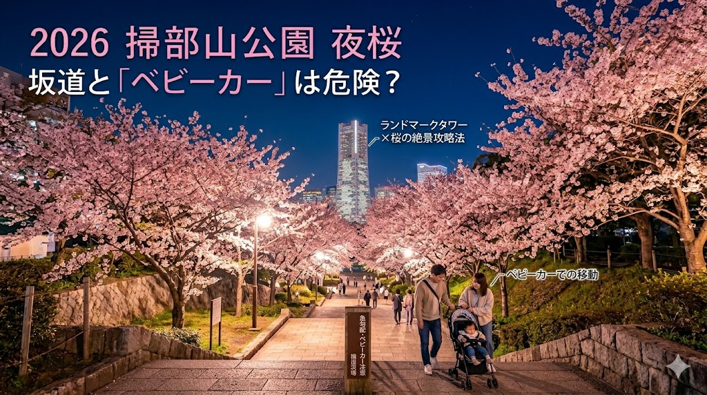 【2026年】掃部山公園の夜桜は「坂道」が鬼門?ベビーカーは危険?ランドマークタワー×桜の絶景攻略法は?